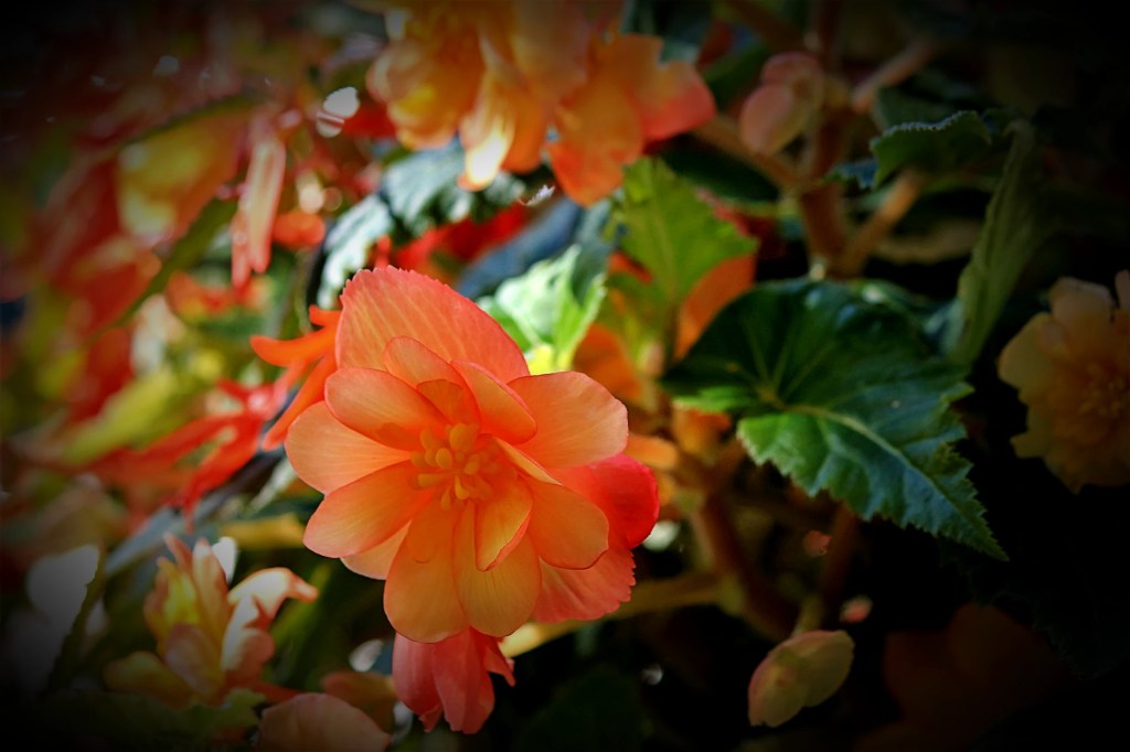 What is not to love about begonia’s ? They are one of the easiest plants I know. They come in all kinds of colours and shapes of flowers and leafs. It’s a bulb you plant frostfree in early Spring, once the frosts are gone you can put them outside in a shady place, they can manage a bit of sun but then you have to water them more. In Autumn after the first frost you remove them out of the ground or pot they are in, remove the soil around the bulb and put them in a newspaper in a cool frostfree place and the next year you get them out in early Spring ( you’ll notice they already have some new shoots !) and you start all over again. You can repeat this for many decades, they will always perform, always.
