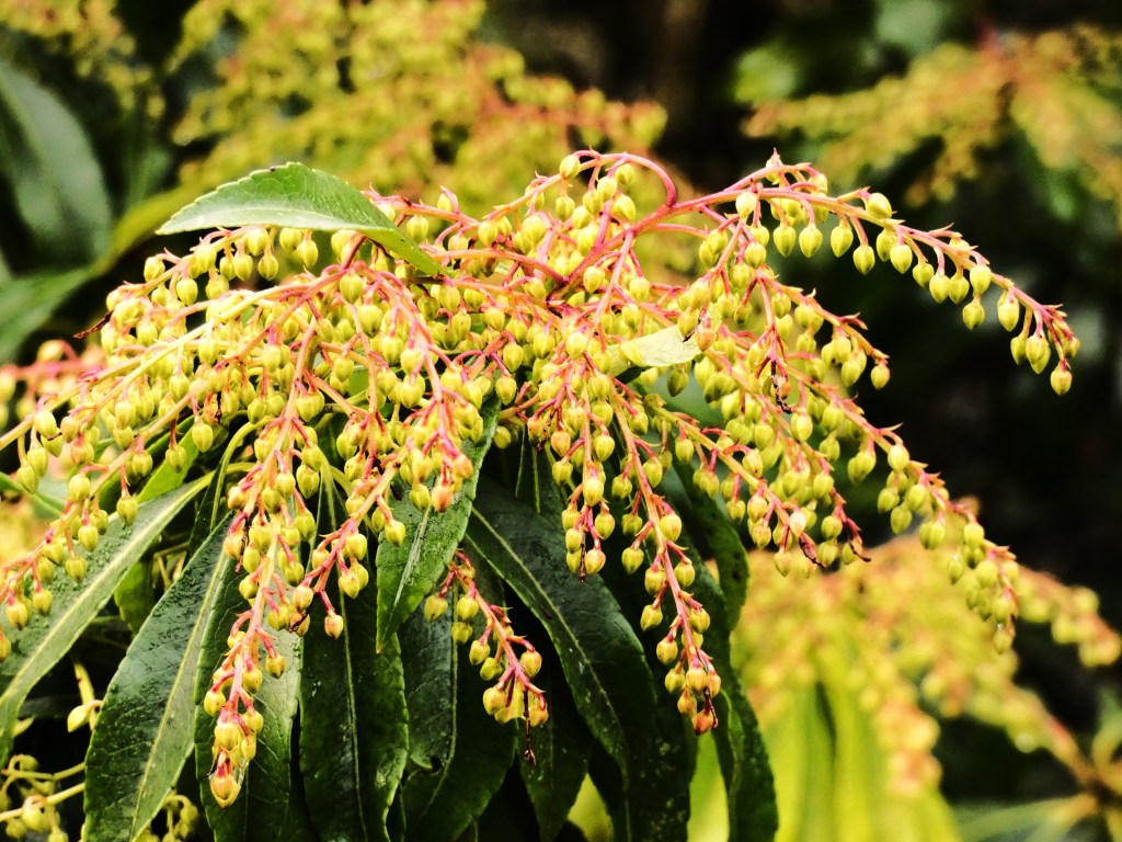 Pieris japonica is preparing to bloom soon but they are already looking pretty.