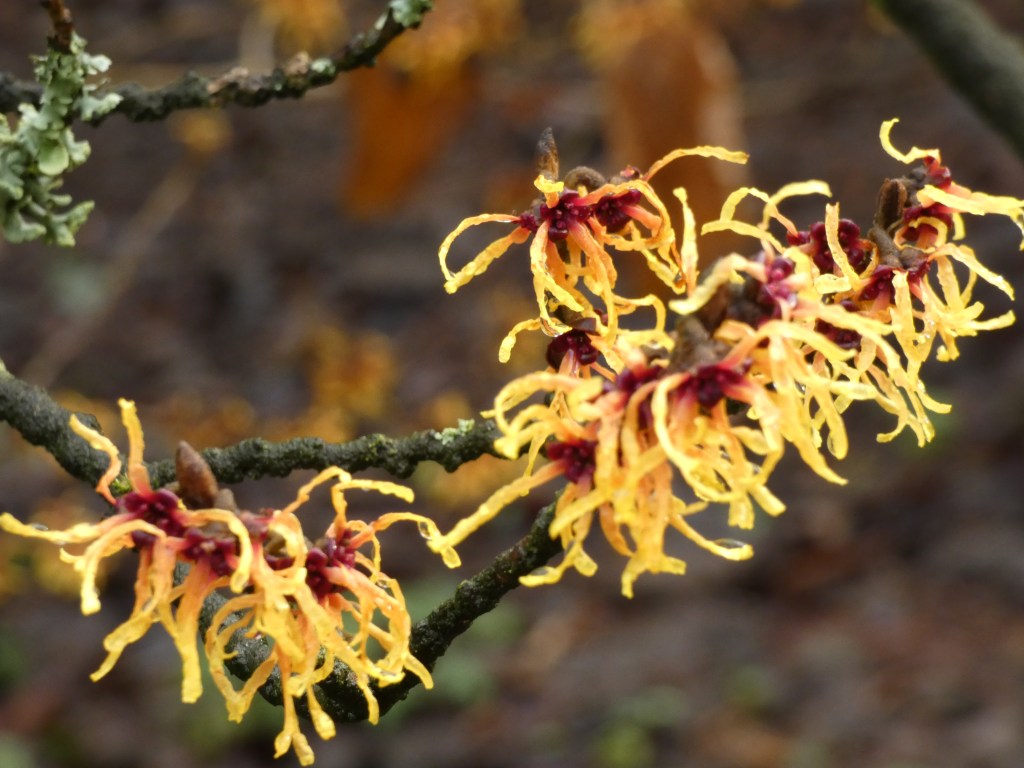 Hammamelis, there were many hammamelis bushes, the flowers always look like they need a bit of ironing, they come in many colours.